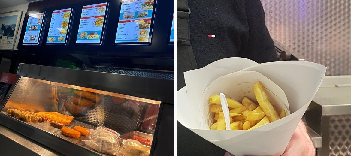 You can't go wrong with their classic Cod, either small or large. The Doner Kebab is also popular, especially in a wrap. Don't forget to explore their kid's menu, which offers a delightful Small Burger & Chips.